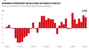 Październikowe dane o sprzedaży detalicznej były lepsze od oczekiwań analityków (+5,4 proc. rdr vs konsensus +3,9 proc.). Najnowsze dane, wraz z dobrymi odczytami z przemysłu i budownictwa, wskazują, że IV kw. 2025 r. w polskiej gospodarce będzie mocny - wskazują w komentarzach ekonomiści.