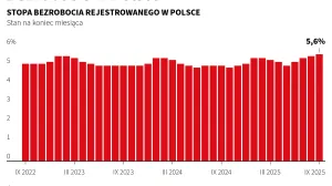 Stopa bezrobocia we wrześniu 2025 r. wyniosła 5,6 proc., wobec 5,5 proc. miesiąc wcześniej - podał Główny Urząd Statystyczny.